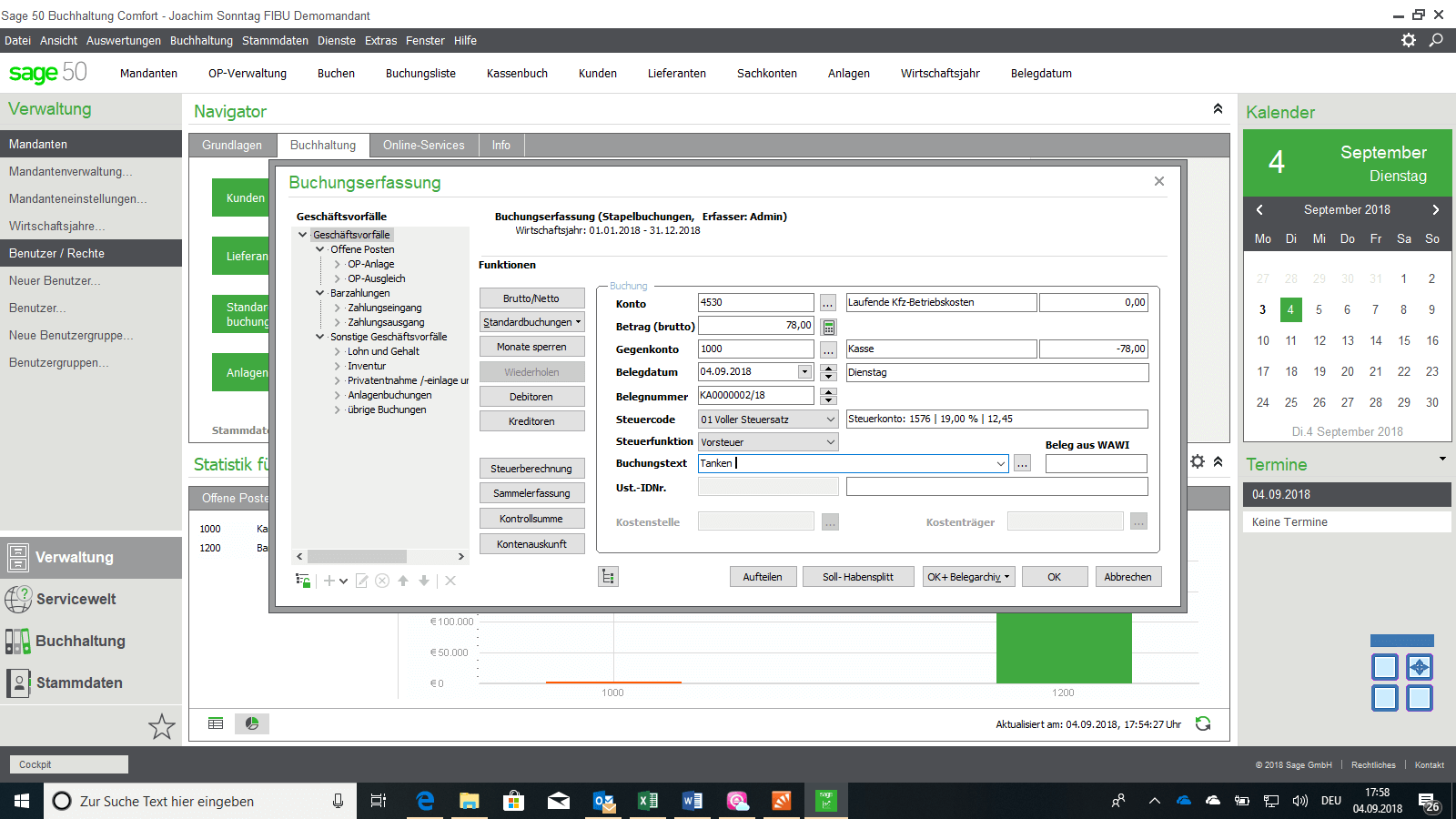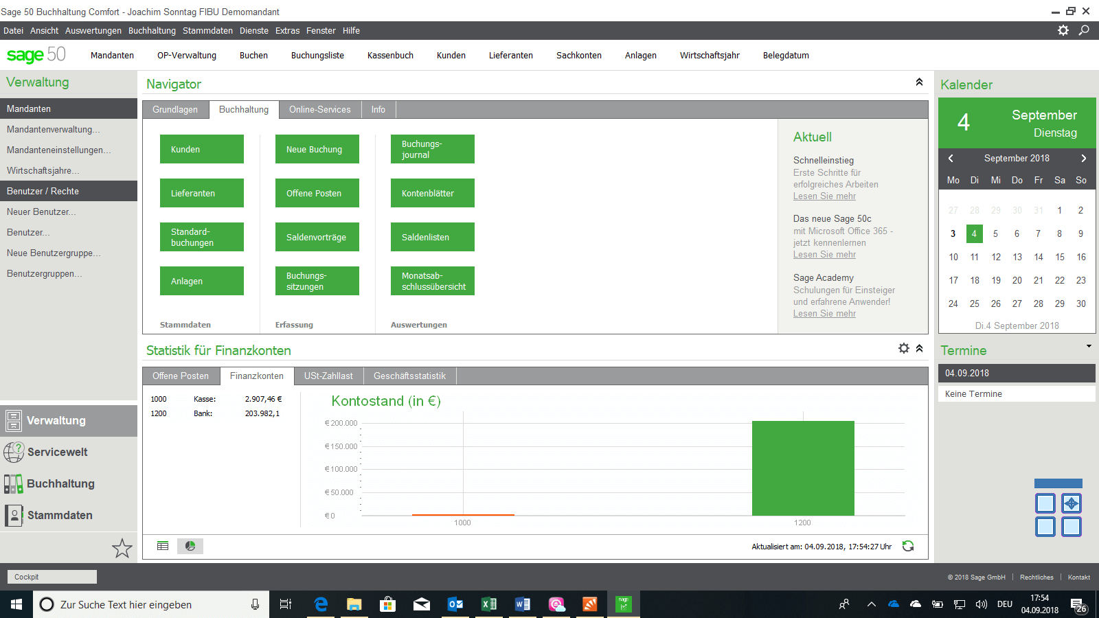 Egal, ob Finanzbuchhaltung oder Einnahmen-Überschuss-Rechnung (EÜR), Sage 50 Connected Buchhaltung macht es Ihnen leicht, sich schnell in der komplexen Thematik Buchführung zurechtzufinden. In kürzester Zeit werden Sie Mandanten anlegen und Geschäftsvorfälle (Buchungen) erfassen können.